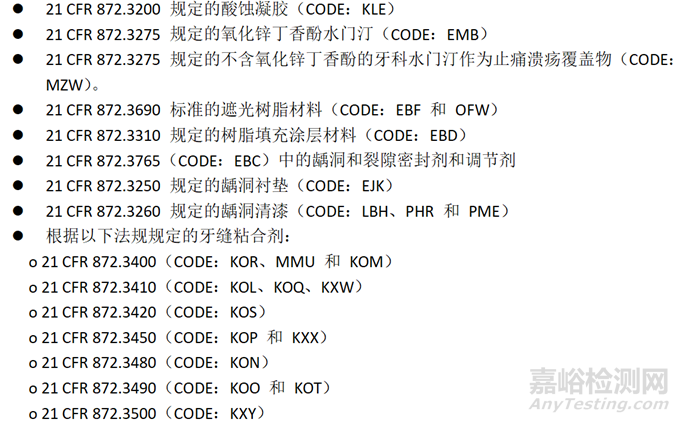 本指南的范圍包括牙科水門汀,這些牙科水門汀下列法規(guī)和產(chǎn)品代碼中的 II 類器械。