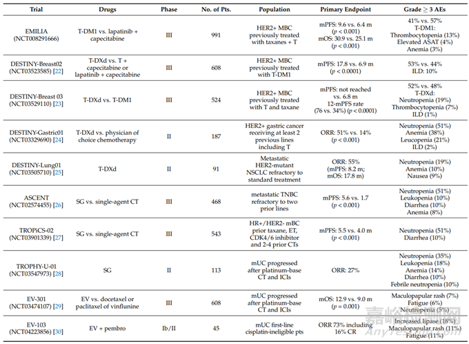 表1 T-DM1、T-DXd、SG和EV被FDA批準的關鍵試驗