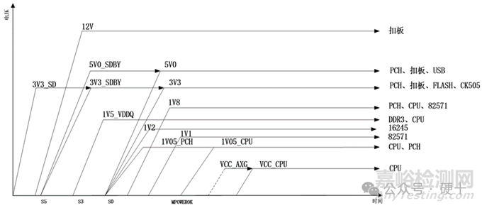電源專題,需要分析電源需求,每種電源的電壓范圍,電流需求,動態(tài)響應(yīng),上電時序;時鐘專題,針對每個時鐘的輸入的電平標準,頻率,抖動等參數(shù),時鐘時序,并按照各種時鐘解決方案進行優(yōu)化。每個管腳怎么用,怎么接,對接的管腳的電平是否滿足要求,都需要分析清楚并文檔化。例如電源專題:芯片廠家給出的的是一些針對他自己器件的要求,例如圖是Intel對其電源上電時序之間的耦合關(guān)系的要求和一些先后順序的描述。