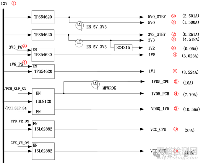 共性需求合并圖:展示不同電壓的器件合并后的供電需求。