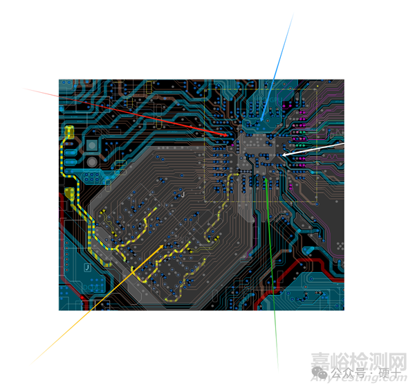 當然器件布局的分布跟很多因素有關(guān),此處我們不展開。但是我們在優(yōu)化走線、散熱、結(jié)構(gòu)、干擾等因素之后。我們重點看一看,主芯片的“大電流”電源的位置。