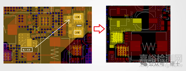 第三、即使通過空電流環(huán)的大小,輸入電源與DC/DC之間會仍然會形成跳變的電流環(huán),形成一個感性干擾源。