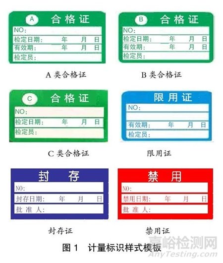 (2)“合格證”適用于經(jīng)檢定/校準確認合格的計量器具;“限用證”適用于計量器具有多個測量參數(shù),其中經(jīng)檢定/校準合格卻存在不合格的參數(shù),但設(shè)備能正常使用,或經(jīng)檢定/校準不合格但在某個量程內(nèi)或降級可以使用的計量器具;“封存證”適用于閑置一個檢定/校準周期以上不使用的計量器具;“禁用證”適用于經(jīng)檢定/校準不合格并確認為不能繼續(xù)使用,或需維修及正在維修中的計量器具。