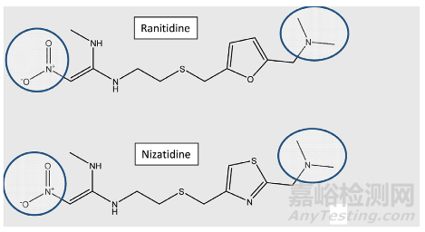圖1:雷尼替丁和尼扎替丁分子結(jié)構(gòu)