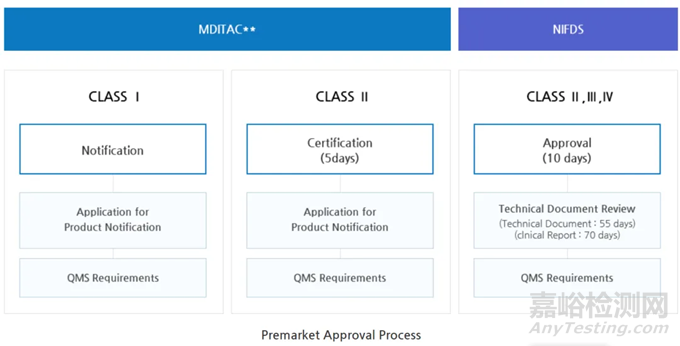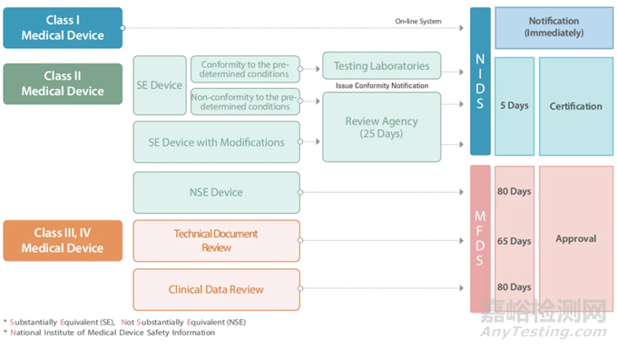 在技術(shù)文件的審核部分,MFDS將大部分Ⅱ類產(chǎn)品的技術(shù)文檔審核交給第三方審核機(jī)構(gòu), 而其他的Ⅱ類、Ⅲ類和Ⅳ類產(chǎn)品由MFDS直接審查。