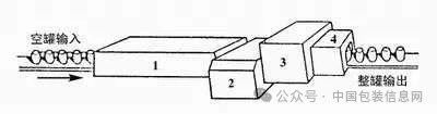 1—包裝罐滅菌部位;2—充填部位;3—包裝罐蓋滅菌部位;4—封罐部位。