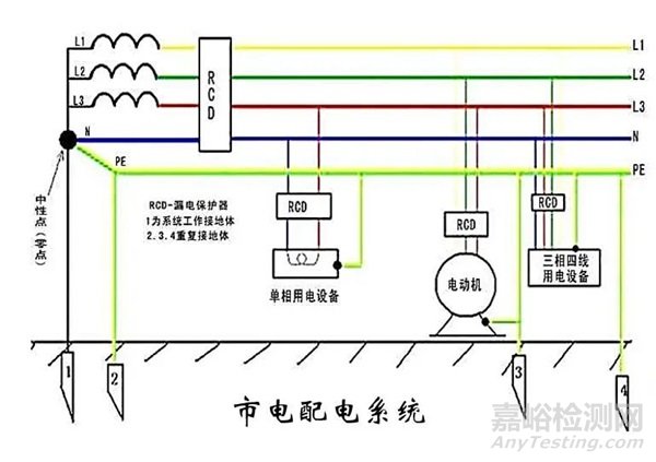 常規(guī)的市電供電變壓器,出于安全的考慮,會有一個(gè)接地點(diǎn)。如圖1所示。只要用電設(shè)備的導(dǎo)電外殼接地,即使相線與設(shè)備外殼絕緣損壞,外殼也不會帶電。如果絕緣太低,就會觸發(fā)過流保險(xiǎn)機(jī)構(gòu)。