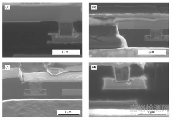 圖3不同溫度下CU互連樣品橫截面應(yīng)力誘生空洞失效FIB照片
