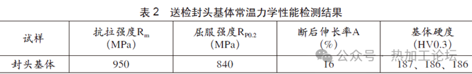 對封頭基體取樣進行常溫力學性能測試,結果見表2,其強度明顯高于、斷后伸長率則低于GB/T 24511—2017中經固溶處理的S30403技術規(guī)范,這應與其成型加工過程中的冷作硬化作用有關。