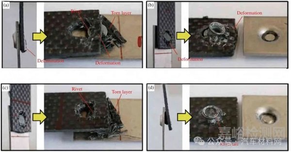 圖5 尼龍基碳纖維復合材料(PA6-CFRP)為上基板鉚接接頭[32]