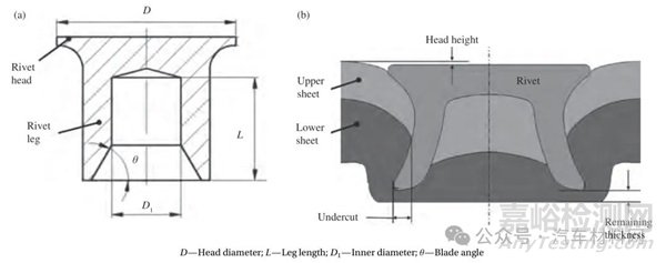 圖2 典型自沖鉚鉚釘(a)及接頭結構(b)示意圖