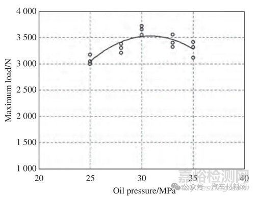圖18 沖鉚壓力(液壓沖鉚設備油壓)對接頭最大拉伸剪切載荷的影響[49]