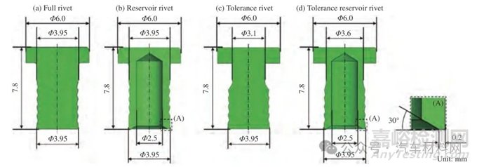 鉚釘作為連接上、下基板的關鍵部件,其結構形式、尺寸和耐腐蝕性能都將決定接頭的連接強度和使用壽命,對鉚釘?shù)慕Y構和尺寸進行改進的目標,一方面是降低鉚接過程中復合材料板的損傷缺陷,同時強化鉚釘與下板形成的機械內(nèi)鎖結構,并改善接頭鉚釘周圍的應力分布狀態(tài)。此外,對于腐蝕環(huán)境下服役的接頭,則需要提升鉚釘?shù)哪臀g性以保障接頭的服役壽命。