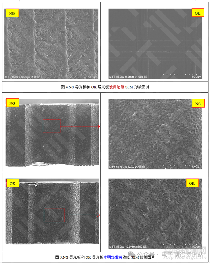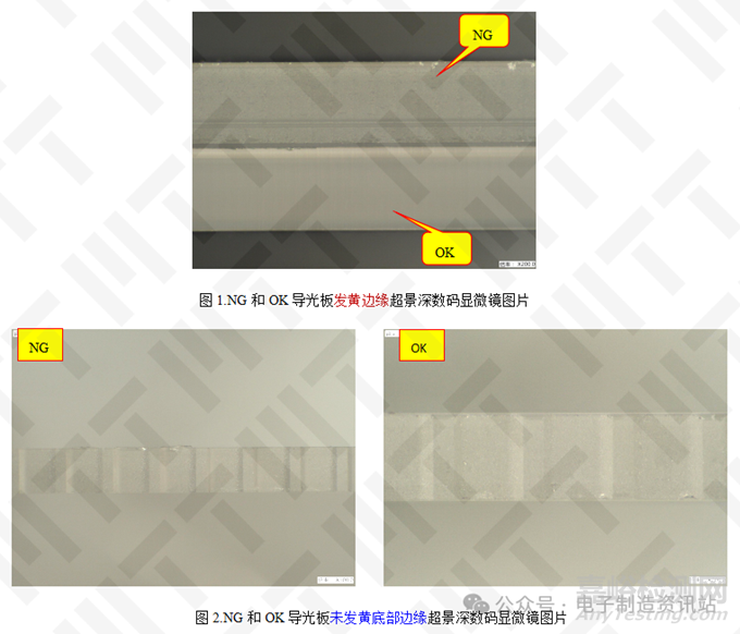 最終得出結(jié)論,導(dǎo)光板在背光通電后邊緣發(fā)黃的主要原因是滲入了冠醚,這種物質(zhì)影響了導(dǎo)光板的透光率和光效,從而導(dǎo)致發(fā)黃現(xiàn)象的出現(xiàn)。