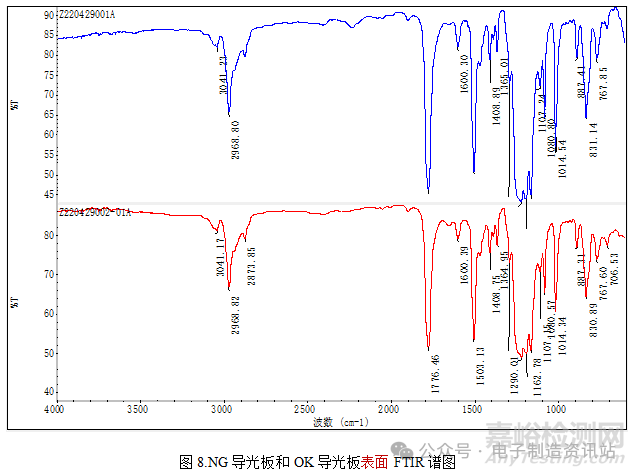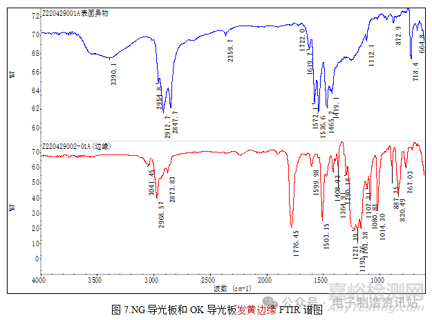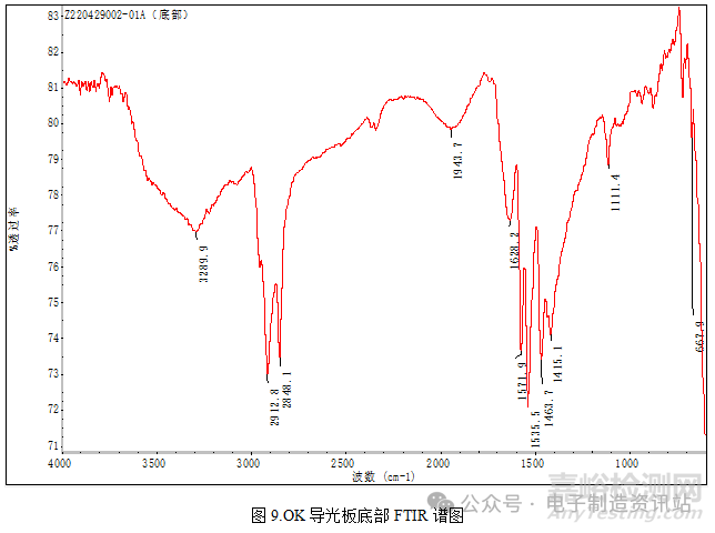 對(duì)OK導(dǎo)光板底部邊緣物質(zhì)進(jìn)行成分分析,同樣是硬脂酸鈣,如圖9所示。