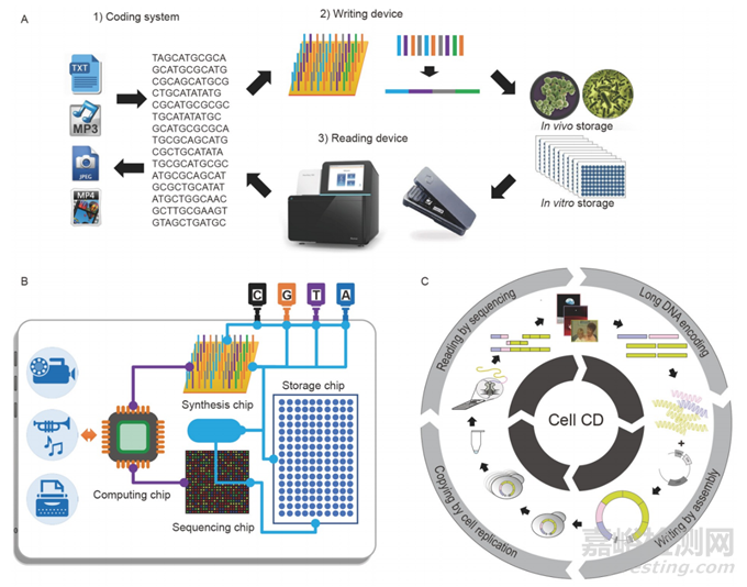 信息存儲(chǔ)一直是人類文明的推動(dòng)力,是知識(shí)積累、文化傳承和技術(shù)代代相傳的必要條件。用于保存信息的技術(shù)可以追溯到古代中國(guó)造紙和結(jié)繩,以及后來(lái)歷史上的紙張和印刷。直到大約半個(gè)世紀(jì)前,基于磁光硅的存儲(chǔ)技術(shù),如硬盤、固態(tài)硬盤和磁帶,不斷改變了信息存儲(chǔ)的方式?,F(xiàn)代數(shù)據(jù)存儲(chǔ)和處理技術(shù)使人類進(jìn)入了數(shù)字時(shí)代,地球上的數(shù)字?jǐn)?shù)據(jù)總量呈指數(shù)級(jí)增長(zhǎng)。然而,當(dāng)前的存儲(chǔ)介質(zhì)正面臨一些挑戰(zhàn):密度的理論極限、持續(xù)時(shí)間短暫、高能耗和環(huán)境污染。因此,需要開(kāi)發(fā)新一代信息歸檔技術(shù)。令人驚訝的是,DNA作為保存遺傳信息的天然介質(zhì),已被發(fā)現(xiàn)是潛在的人工數(shù)據(jù)存儲(chǔ)介質(zhì),具有高密度、長(zhǎng)期耐用性和低維護(hù)成本。利用合成DNA進(jìn)行高密度和長(zhǎng)期數(shù)據(jù)存儲(chǔ)已成為一個(gè)非常有前景的研究領(lǐng)域,吸引了全球政府和產(chǎn)業(yè)投資者的極大興趣。半導(dǎo)體行業(yè)協(xié)會(huì)、國(guó)防高級(jí)研究計(jì)劃局、國(guó)家科學(xué)基金會(huì)、半導(dǎo)體研究公司和情報(bào)高級(jí)研究計(jì)劃活動(dòng)都為美國(guó)DNA數(shù)據(jù)存儲(chǔ)技術(shù)和相關(guān)半導(dǎo)體做出了貢獻(xiàn)。歐盟委員會(huì)還特別資助了DNA數(shù)據(jù)存儲(chǔ)并啟動(dòng)了地平線2020計(jì)劃。中國(guó)科協(xié)在2018年將DNA數(shù)據(jù)存儲(chǔ)列為60個(gè)重大科技工程問(wèn)題之一。中國(guó)的第十四個(gè)五年計(jì)劃明確促進(jìn)了DNA存儲(chǔ)等前沿技術(shù)的發(fā)展。微軟和西部數(shù)據(jù),以及Twist Biosciences和Illumina在2020年宣布創(chuàng)建“DNA數(shù)據(jù)存儲(chǔ)聯(lián)盟”。它的“共同目標(biāo)是發(fā)揮DNA數(shù)據(jù)存儲(chǔ)作為現(xiàn)有和新興歸檔存儲(chǔ)用例中新存儲(chǔ)介質(zhì)的全部潛力”。迄今為止,已有50多家公司和學(xué)術(shù)機(jī)構(gòu)加入了該聯(lián)盟。