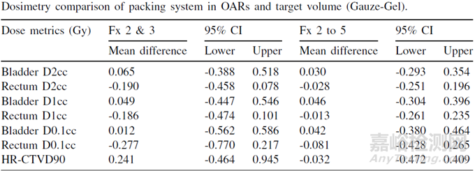 BrachyGel 和標準陰道填塞物 (VP) 在危及器官 (OAR) 或高危臨床靶區(qū) (HR-CTV) 的劑量測量方面沒有臨床意義上的差異。在患者和醫(yī)生的使用體驗方面,BrachyGel 的表現(xiàn)優(yōu)于紗布填塞物。