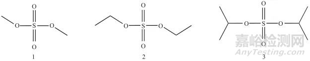 1—硫酸二甲酯;2—硫酸二乙酯;3—硫酸二異丙酯圖2 3種硫酸酯基因毒雜質(zhì)的化學(xué)結(jié)構(gòu)式