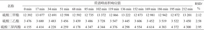 表5 3種硫酸酯溶液穩(wěn)定性試驗結(jié)果