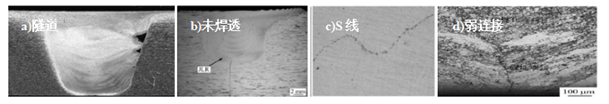 雖然攪拌摩擦焊能夠避免傳統(tǒng)熔焊過程中產(chǎn)生的氣孔、裂紋等缺陷,但不當?shù)暮附庸に嚪桨敢矔е潞缚p中產(chǎn)生諸如飛邊、溝槽等表面缺陷和隧道型孔洞、未焊透、S線、弱連接等內(nèi)部缺陷。