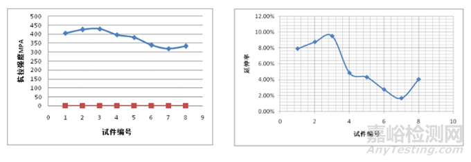 圖5 含不同尺寸隧道缺陷的攪拌摩擦焊接頭抗拉強度和斷后延伸率曲線