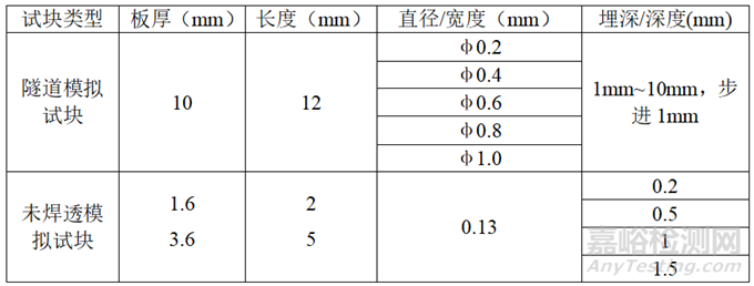 表1 隧道和未焊透缺陷模擬試塊信息表