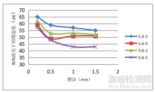 圖9 1.6mm板厚中不同長度和不同深度未焊透模擬缺陷的檢測結果
