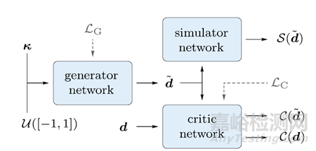 圖2 展示了用于變形結(jié)構(gòu)逆設(shè)計的神經(jīng)網(wǎng)絡(luò)模型的各個組件。該模型由三個獨立的網(wǎng)絡(luò)組成:生成器網(wǎng)絡(luò)、判別器網(wǎng)絡(luò)和預(yù)訓(xùn)練的模擬器網(wǎng)絡(luò)。