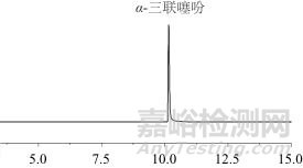 在1.2儀器工作條件下,α-三聯(lián)噻吩標準品溶液多反應監(jiān)測色譜圖見圖1。