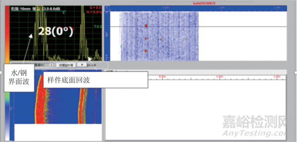 即該檢測系統(tǒng)配合穩(wěn)定的機械掃查裝置,可實現(xiàn)該規(guī)格試件的批量自動化檢測,能夠保證鋼板上下表面盲區(qū)在1 mm。
