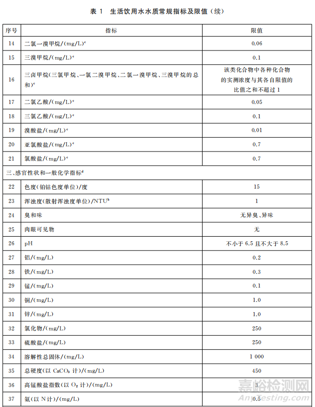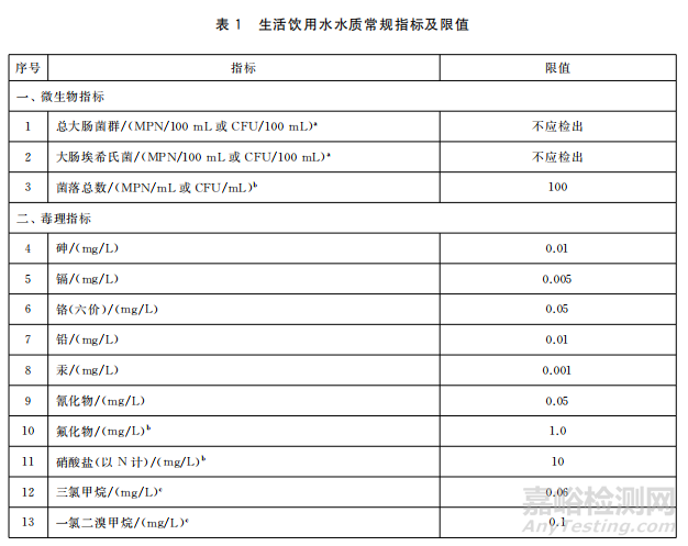 2、生活飲用水常規(guī)指標(biāo)及限值