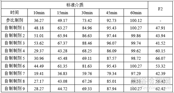 影響最大的關(guān)鍵工藝參數(shù)最終確定為攪拌槳速度、加液速度(加液時(shí)間)及制粒時(shí)間,采用科學(xué)的正交試驗(yàn)設(shè)計(jì),通過(guò)考察工藝的順暢性,溶出曲線的擬合性,從而篩選出合適的攪拌槳速度、加液速度(加液時(shí)間)及制粒時(shí)間。