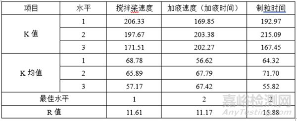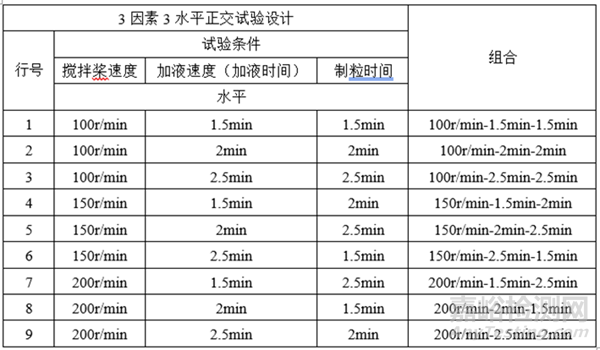 在對(duì)影響濕法制粒的處方和工藝深入了解的基礎(chǔ)上,通過(guò)對(duì)濕法制粒處方和工藝的深入分析,篩選出相應(yīng)的關(guān)鍵物料屬性和關(guān)鍵工藝參數(shù)。先采用正交試驗(yàn)設(shè)計(jì)對(duì)本產(chǎn)品的關(guān)鍵物料屬性進(jìn)行優(yōu)化和確認(rèn),形成本品的處方,在確定了本品處方的基礎(chǔ)上,對(duì)本品關(guān)鍵工藝參數(shù)進(jìn)行優(yōu)化,形成本品的工藝,最終通過(guò)科學(xué)有效的濕法制粒研發(fā)策略確定了本品的處方和工藝。