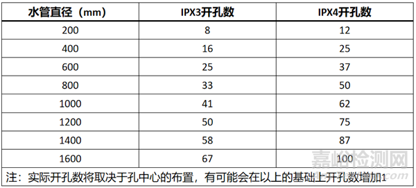 IPX3與IPX4水管直徑和開孔數(shù)要求