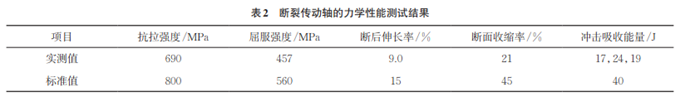 在斷裂傳動軸上取樣,對試樣進行力學性能測試,結果如表2所示。由表2可知:斷裂傳動軸的力學性能不符合GB/T 699—2005的要求。