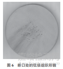 在直徑為135mm的軸一側斷口附近取橫截面試樣,對試樣進行熱酸蝕試驗,結果顯示試樣心部區(qū)域存在較多的鋸齒狀小裂紋,小裂紋宏觀呈同心圓分布形貌(見圖6)。