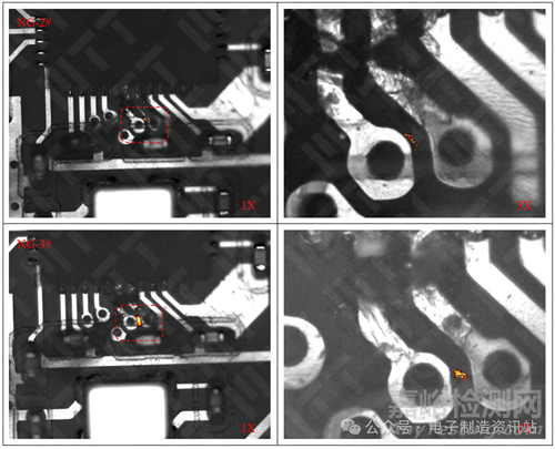 2pcs漏電通孔之間都發(fā)現(xiàn)異常熱點(diǎn)現(xiàn)象,即漏電位置。