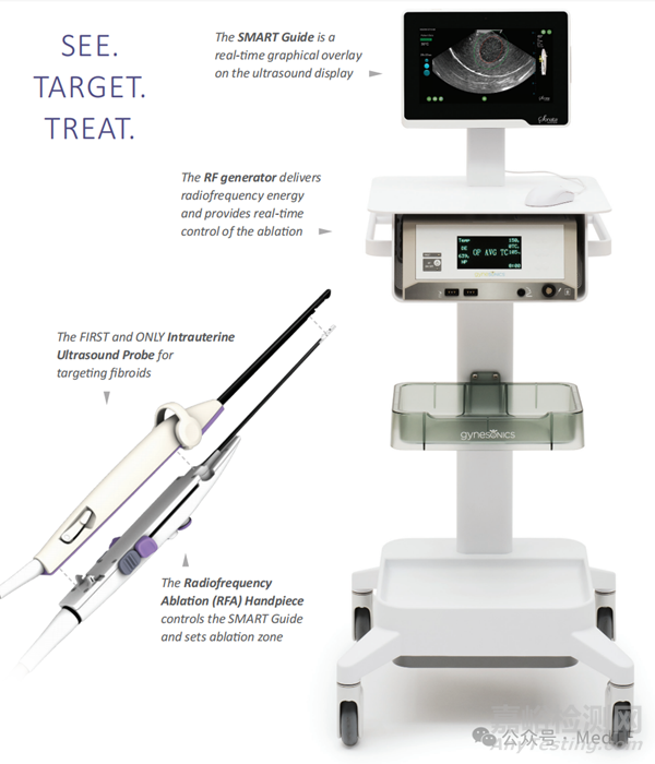用于控制SMART Guide并設(shè)置消融區(qū)域,它與子宮內(nèi)超聲探頭相連接,提供超聲引導(dǎo)的射頻消融。