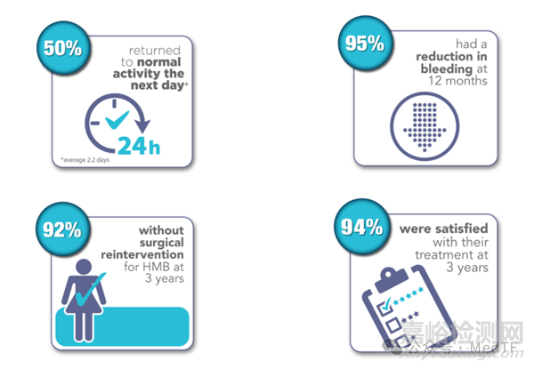 95%的患者在術(shù)后12個(gè)月時(shí)重度月經(jīng)出血(HMB)癥狀明顯改善;