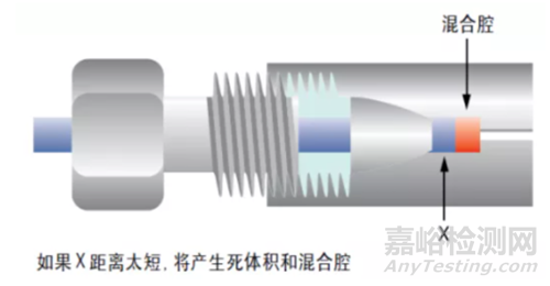 4、另外接裝色譜柱時,需確保管線接頭匹配完好(特別注意peek管接頭的使用,以及管線與色譜柱的連接處)避免形成接頭空腔(如下圖)