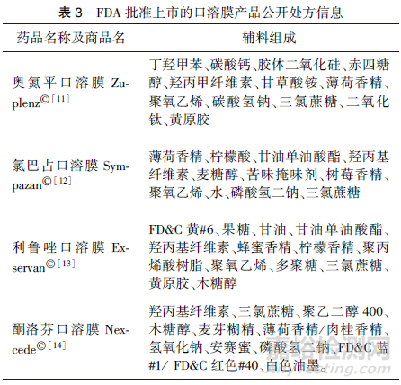 通過以上已上市產(chǎn)品處方的梳理,可了解口溶膜產(chǎn)品處方的常規(guī)組成,對(duì)研發(fā)和評(píng)價(jià)具有一定參考價(jià)值。