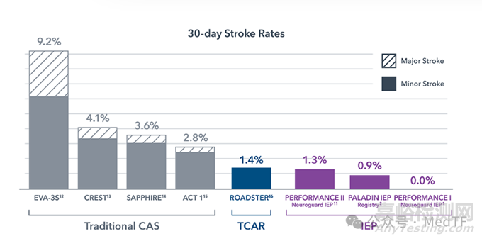 Neuroguard臨床研究(PERFORMANCE I和PERFORMANGE II IDE)都顯示出高度安全性:30天和1年內(nèi)無重大中風、無神經(jīng)死亡和無支架血栓形成。比波科剛剛收購Silk Road的TCAR技術(shù)更低栓子引發(fā)卒中。