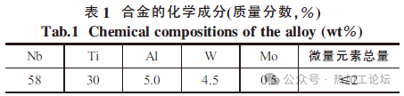 航空、航天及空間技術(shù)的高速發(fā)展離不開高溫結(jié)構(gòu)材料的發(fā)展,高溫結(jié)構(gòu)材料的發(fā)展是航天和空間技術(shù)發(fā)展的基礎(chǔ)和支撐。目前,高溫結(jié)構(gòu)件材料中,高溫鈦合金高溫強(qiáng)度小,C/C復(fù)合材料可加工性差,鈮基高溫合金不僅強(qiáng)度高,而且加工性和抗氧化性好,但常規(guī)C103、Nb521 等鈮合金材料的密度大,而航空航天技術(shù)的發(fā)展要求材料不僅具有很高的高溫強(qiáng)度和優(yōu)良的可加工性能, 而且材料的密度要小。