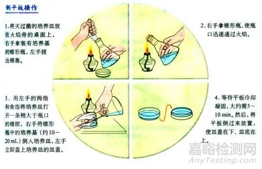 1.先在酒精燈火焰旁打開無菌空平皿,注意開啟幅度不宜過大,加入一定量的樣液。