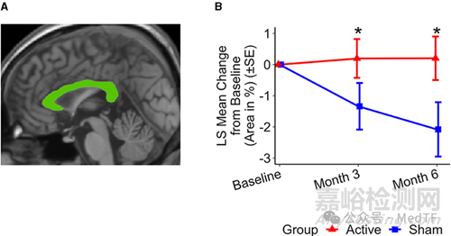 六個(gè)月后,試驗(yàn)組的胼胝體總面積保留了+0.20%,而假手術(shù)組的變化為-2.08%,(p<0.02);