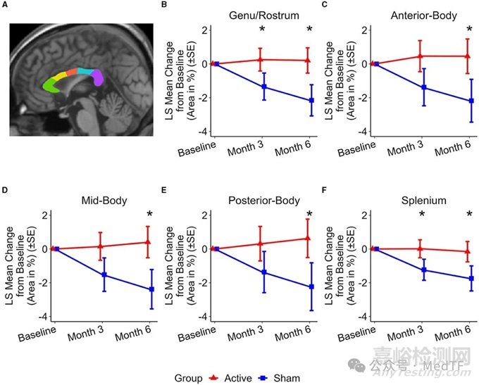 所有觀察到的胼胝體面積差異有利于試驗(yàn)組,并在3個(gè)月就觀察這個(gè)現(xiàn)象;