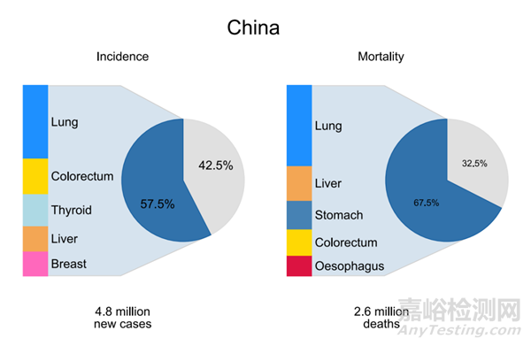 與全球整體情況相比,中國的癌癥負(fù)擔(dān)更加嚴(yán)峻。國家癌癥中心的數(shù)據(jù)指出,2022年中國預(yù)估新增癌癥病例482.5萬例,癌癥死亡病例為257.4萬。在中國十大高發(fā)癌癥中,除生殖器官區(qū)域的癌癥外,其余癌癥的發(fā)病率和死亡率均高于全球水平,迫切需要有效的治療手段。