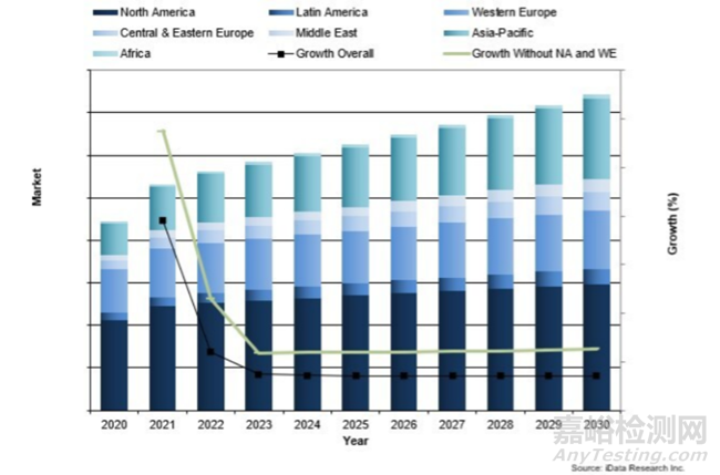 圖 1:2023-2030 年全球各地區(qū)腹腔鏡市場總價值(CNW Group/iData Research Inc.)