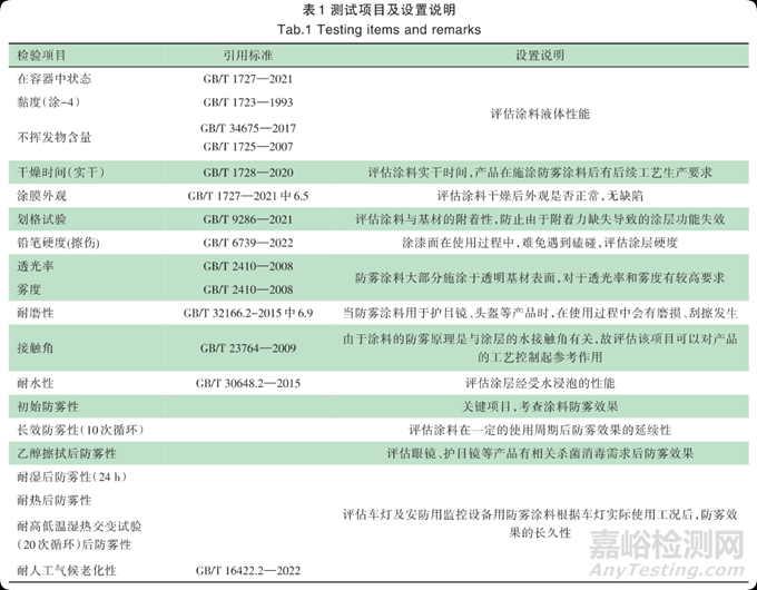 標(biāo)準(zhǔn)中項目設(shè)置是根據(jù)目前防霧涂料的應(yīng)用領(lǐng)域及實際的使用情況來確定的,考慮了產(chǎn)品的本身特性及實際應(yīng)用中需要關(guān)注的性能,并根據(jù)產(chǎn)品分類和用途,設(shè)置相關(guān)試驗項目。