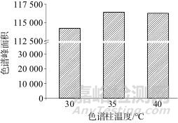 圖2 不同柱溫下10-HDA的色譜峰面積